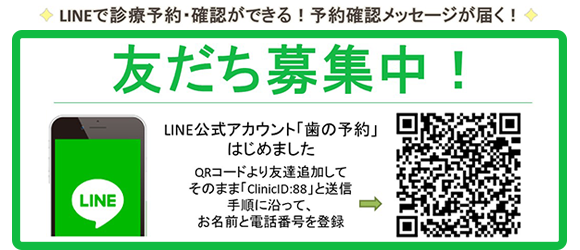 LINEで友だち登録いただくと、診療の予約や確認、また予約日近くになりますと予約確認メッセージが届くようになります。